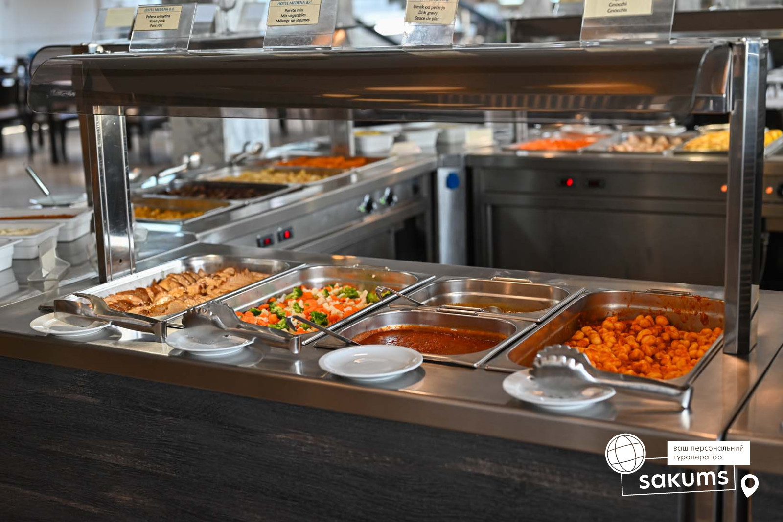 Гості можуть насолоджуватися смачними стравами шведського столу.
